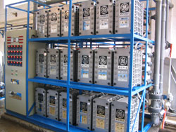 工程單位:湖南省湘潭鋼鐵集團有限公司焦化廠 工程名稱:干熄焦項目電除鹽水站裝置(電除鹽裝置) 規格型號:MFEDI-60m3/h 主要用途:電除鹽裝置,用于對水進行二次脫鹽,產水量60m3/h,產品水電阻率在10MΩ·cm以上,使水質和水量滿足干熄焦鍋爐的給水要求。 |