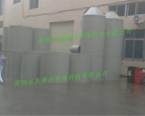 酸、堿性廢氣凈化工藝與設備。它具有結構簡單、能耗低、凈化效率高和適用范圍廣的特點,能有效去除氯化氫氣體(HCl)、氟化氫氣體(HF)、氨氣(NH3)、硫酸霧(H2SO4)、鉻酸(CrO3)、氰氫酸氣體(HCN)、堿蒸氣(NaOH)、硫化氫氣體(H2S)、福爾馬林(HCHO)等水溶性氣體。酸霧廢氣由風管引入凈化塔,經過填料層,廢氣與氫氧化鈉吸收液進行氣液兩相充分接觸吸收中和反應,酸霧廢氣經過酸霧凈化塔凈化后,再經除霧板脫水除霧后由風機排入大氣。吸收液在塔底經水泵增壓后在塔頂噴淋而下,最后回流至塔底循環使用。凈化后的酸霧廢氣達到廣東省地方排放標準的排放要求,低于國家排放標準