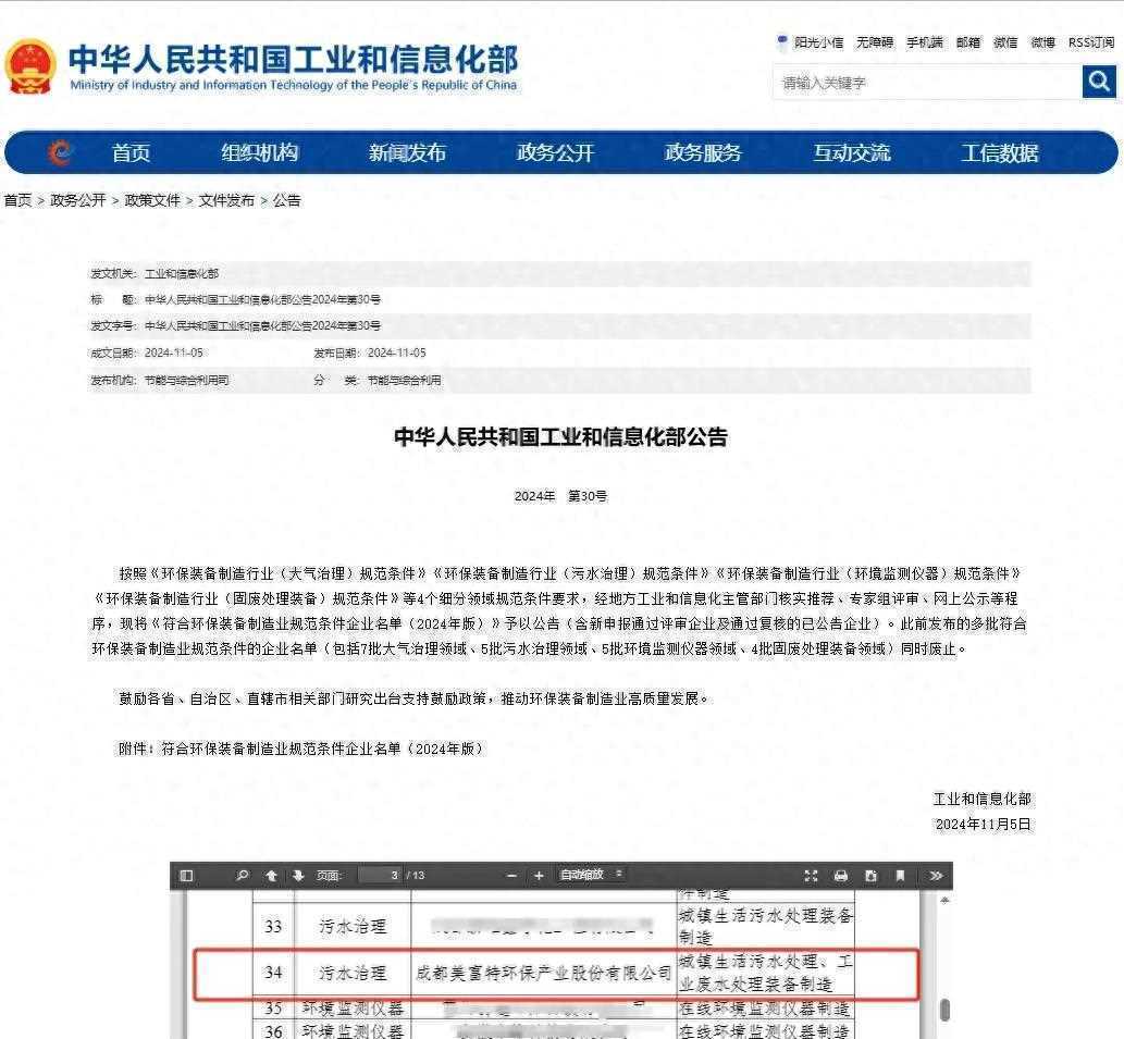 四川僅兩家!美富特入選國家2024環保裝備制造業規范條件企業!