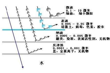 超濾是一種由壓力推動的膜過濾過程,用于從液體和水中去除懸浮顆粒。超濾膜的孔徑范圍為0.005至0.05微米,可以讓水分子通過而截留其他雜質,例如硅藻物(DE), 寄生蟲, 細菌, 病毒, 膠狀物和一切懸浮固體,從而形成干凈清澈的滲透液,可供直接使用或用于進一步凈化工藝。![]() |