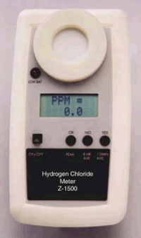 Z-1500手持式氯化氫檢測儀,用于測量空氣中的氯化氫濃度。典型量程0-50ppm,分辨率0.1ppm。LCD顯示ppm濃度,每10秒更新一次讀數,還可顯示15分鐘平均STEL,1-8小時TWA平均值。具有低電量指示和聲音報警功能,報警值可設定為0-50ppm的任意值。