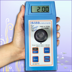 氯是最常用的水消毒劑,應用極廣,從飲用水、廢水的處理到泳池、礦泉療養地的衛生處理以及食品加工過程中的消毒滅菌都有應用。基于微處理器控制的離子計具有較高的解析度和精確度,且測量迅速。 HI93711余氯,總氯均可以測量。為擴大應用范圍,HANNA推出的HI93734余氯、總氯的測量范圍擴大到0.00 to 9.99mg/L。 主要性能特點 Quick, simple and precise! 訂購型號 HI93711 (低量程余氯總氯) HI93734 (高量程余氯總氯) 測量范圍 余氯 0.00 to 2.50 mg/L 余氯0.00 to 9.99 mg/L 解析度 0.01 mg/L 0.01 mg/L 測量精度 讀數的±3%±0.03 mg/L 讀數的±3%±0.03 mg/L 光源波長 LED 555 nm 檢光器 硅光電池 供電類型 1 x 9V電池,10分鐘不用后自動關機 適用環境 0 to 50°C (32 to 122°F);RH max 95%,無冷凝 尺寸重量 180 x 83 x 46 mm;290g 測量方法 EPA 330.5 DPD試劑法。水樣中的氯和DPD 試劑反應呈淡粉紅色