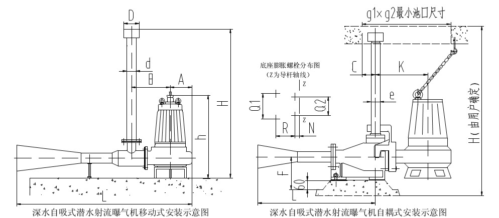通過(guo)潛(qian)水(shui)(shui)泵產(chan)生的(de)水(shui)(shui)流(liu)(liu)(liu)(liu)經過(guo)噴(pen)(pen)嘴形成(cheng)高速水(shui)(shui)流(liu)(liu)(liu)(liu),在(zai)噴(pen)(pen)嘴周圍形成(cheng)負壓吸入(ru)空氣(qi),經混合室與水(shui)(shui)流(liu)(liu)(liu)(liu)混合,在(zai)喇叭形的(de)擴(kuo)散管內(nei)產(chan)生水(shui)(shui)氣(qi)混合流(liu)(liu)(liu)(liu),高速噴(pen)(pen)射而(er)出,夾帶許多氣(qi)泡(pao)的(de)水(shui)(shui)流(liu)(liu)(liu)(liu)在(zai)較(jiao)大面積(ji)和深度的(de)水(shui)(shui)域內(nei)渦旋攪拌,完(wan)成(cheng)曝氣(qi),并且其軸功(gong)率不隨潛(qian)沒深度的(de)變(bian)(bian)化而(er)變(bian)(bian)化,進氣(qi)量可(ke)以(yi)調節。正因為如(ru)此,射流(liu)(liu)(liu)(liu)式曝氣(qi)機可(ke)以(yi)在(zai)水(shui)(shui)位變(bian)(bian)化較(jiao)大的(de)池中應用。