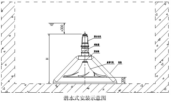 1 安裝前由合格電工檢查電機、電器,并確定轉向,葉輪離池底最小的工作距離應小于≤300mm,且池底平整,結實,池內無建筑垃圾。