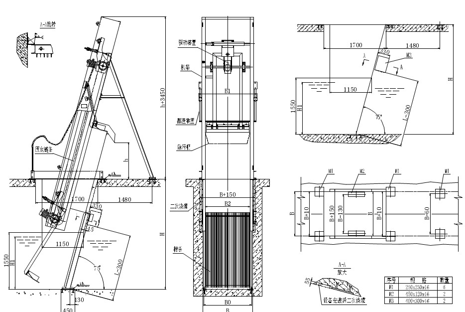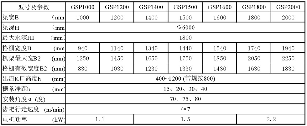 c) 除格柵部件、齒耙在柵條部位除污時外,其它部位均在正常最高水位以上,不易腐蝕,便于維護;