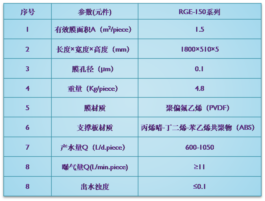 RGE Uiltrafiltration(UF) RGE150型膜元件參數: