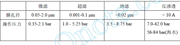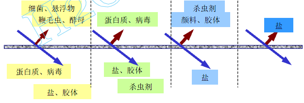 膜分離技術是一大類技術的總稱。和水處理有關的主要包括微濾、超濾、鈉濾和反滲透等幾類。這些膜分離產品均是利用特殊制造的多孔材料的攔截能力,以物理截留的方式去除水中一定顆粒大小的雜質。其過濾的精度和濾膜本身的孔徑大小有關。通常習慣把孔徑較大的稱為微濾(Microfiltration),而較小的稱為超濾( Ultrafiltration),而“孔徑”更小則是鈉濾和反滲透。