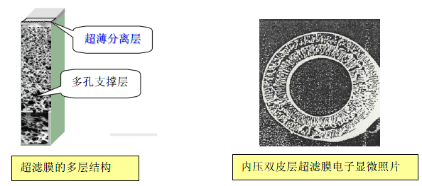 超濾膜屬于非對稱的結構,即包括致密的皮層(真正起分離作用)和多孔的支撐層。這種結構既保證了良好的分離效果,又提高了膜通量,降低運行能耗,并抗污堵。這些因素使得膜產品最終能夠實現大工業化的應用。目前在青島、山西等地多個熱電廠的鍋爐給水系統中已經成功采用超濾做為反滲透的預處理。
