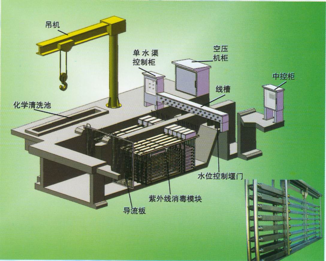 Onyx明渠式紫外消毒系統原理:紫外線消毒是一種基于現代防疫學、光學、生物學和物理化學的消毒技術,利用特殊設計的紫外發生裝置,產生的UV-C照射流水,當水中的各種細菌、病毒、寄生蟲、水藻以及其它病原體受到一定劑量的UV-C輻射后,其細胞中的DNA(脫氧核糖核酸)或RNA(核糖核酸)結構受到破壞,使其喪失復制和繁殖能力,因細菌、病毒的生命周期一般都很短,不能繁殖的細菌、病毒就會迅速死亡,從而在不使用任何化學藥物的情況下達到消毒和凈化的目的。
