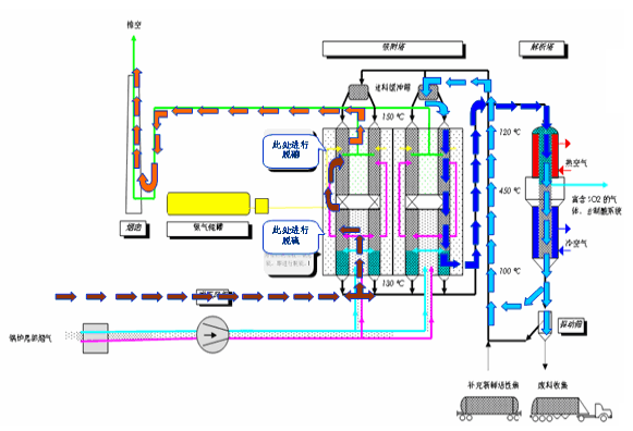 活性焦脫硫系統由煙氣系統、吸附系統、解析系統、活性焦儲存及輸送系統、硫回收系統等組成。