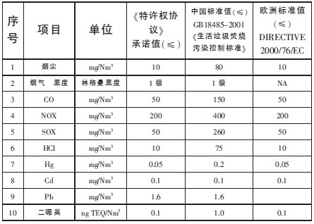 在成都九江環保發電廠項目(成都市第二座焚燒市政生活垃圾發電的項目,正在建設中)上,成都市發改委與項目業主———成都九江環保發電有限公司簽訂的成都市九江發電廠項目《特許權協議》中煙氣排放要求如下表所列:
