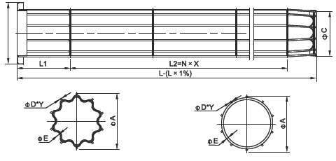 2. N表(biao)示二個相鄰支(zhi)撐(cheng)圈之間(jian)的間(jian)距(ju),X表(biao)示間(jian)距(ju)的數量。
