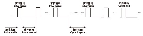 控制(zhi)儀(yi)每(mei)次輸出(chu)一(yi)位的驅(qu)動(dong)(dong)電(dian)壓(ya),一(yi)個驅(qu)動(dong)(dong)電(dian)壓(ya)持續(xu)時間,稱(cheng)(cheng)為(wei)脈沖寬度。相鄰二個輸出(chu)驅(qu)動(dong)(dong)電(dian)壓(ya)之(zhi)(zhi)間的間隔(ge)時間,稱(cheng)(cheng)為(wei)脈沖間隔(ge)。控制(zhi)儀(yi)完成(cheng)對所(suo)有位的電(dian)磁閥(fa)驅(qu)動(dong)(dong)輸出(chu)所(suo)需要(yao)的時間,稱(cheng)(cheng)為(wei)脈沖周期(qi)。兩個脈沖周期(qi)之(zhi)(zhi)間的停頓時間,稱(cheng)(cheng)為(wei)循環(huan)間隔(ge)。