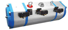三位式氣動執行器是一種特殊規格的執行機構,提供了0°,45°,90°或0°,90°,180°的三位式操作方式。中間位置是依靠兩個輔助活塞的移動產生的機械制動來實現的。中間位置是可調的。