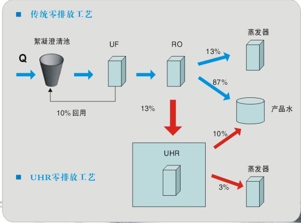 1)傳統零排放工藝中,即使HERO工藝,至少也有13%的最終廢水,需要進入蒸發器;
