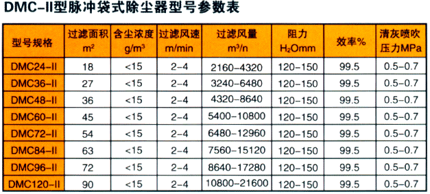 簡(jian)介:DMC-II型脈(mo)沖(chong)(chong)袋式除塵器是在DMC-1型的(de)基礎(chu)上(shang),改進(jin)的(de)新(xin)型高效(xiao)(xiao)脈(mo)沖(chong)(chong)袋式除塵器。其凈(jing)化效(xiao)(xiao)率高、處理氣(qi)體能力大、性(xing)能穩(wen)定、操作方便、屢袋壽命長、維(wei)(wei)修工(gong)作量(liang)小等(deng)優點。而且從結構上(shang)和脈(mo)沖(chong)(chong)上(shang)進(jin)行改革,解決了露天安放和壓(ya)縮空氣(qi)源壓(ya)力低的(de)問題。在結構上(shang)比較(jiao)先進(jin)合(he)理,噴吹壓(ya)力較(jiao)低,清灰(hui)效(xiao)(xiao)果(guo)好、維(wei)(wei)修工(gong)作量(liang)小,凈(jing)化效(xiao)(xiao)果(guo)高,是目(mu)前(qian)較(jiao)理想的(de)脈(mo)沖(chong)(chong)袋式除塵器。