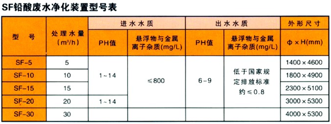 工(gong)藝流(liu)程:首先在(zai)廢(fei)水(shui)(shui)(shui)中投加堿劑(ji),中和廢(fei)水(shui)(shui)(shui)中的硫酸,使(shi)PH值(zhi)達到7-8并與(yu)廢(fei)水(shui)(shui)(shui)中的離子(zi)狀態鉛反應,生(sheng)成不溶于水(shui)(shui)(shui)的氫氧(yang)化鉛,然后(hou)在(zai)水(shui)(shui)(shui)中投加聚凝劑(ji),在(zai)“一步凈(jing)化器”中同時進行混合反應、沉淀、澄清(qing)、輕質濾(lv)料過濾(lv)五個工(gong)藝流(liu)程,除(chu)去水(shui)(shui)(shui)中各種(zhong)氫氧(yang)化物(wu)、氧(yang)化鉛粉、懸浮物(wu)等雜質,達到排放標準,水(shui)(shui)(shui)質清(qing)亮,可送回車間復用。