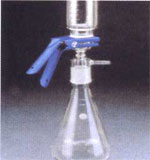 杯式濾器也叫溶劑過濾器,采用真空泵抽真空負壓過濾,適用于細菌污染、顆粒污染分析,以及實驗室少量樣品的過濾。材質有不銹鋼和硼硅酸鹽玻璃兩種,放置Φ50的膜片。不銹鋼杯式濾器采用硅橡膠圈密封,保證了過濾液不會從膜的邊緣滲漏;硼硅酸鹽玻璃杯式濾器采用磨口玻璃,有效的保證了密封性。