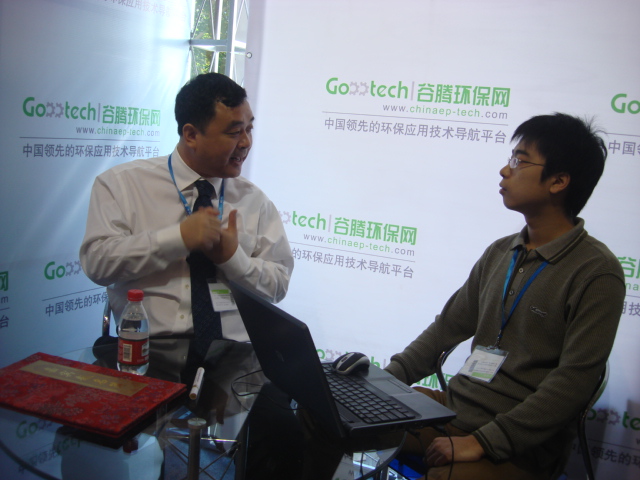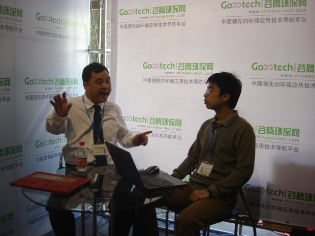 三達膜科技董事長藍偉光于14日上午來到谷騰環保網展位接受專訪