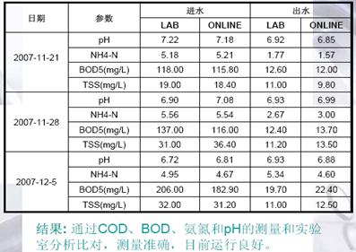 按COD/BOD傳統方法在線檢測儀表年運行費用2萬元/年(試劑及易耗品費用),氨氮試機法在線檢測年運行費用2萬元/年計算,每年可以節省運行費用3.5萬元/年。