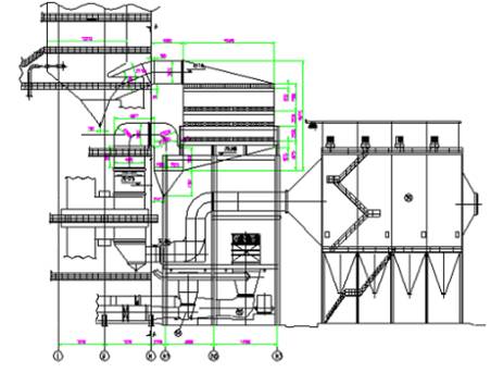 圖1 煙道及反應(ying)器的立(li)面布(bu)置(zhi)圖