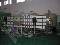 原(yuan)水(shui)→原(yuan)水(shui)加壓泵→多(duo)介(jie)質過(guo)(guo)濾(lv)(lv)器(qi)→活(huo)性炭過(guo)(guo)濾(lv)(lv)器(qi)→軟(ruan)水(shui)器(qi)→精密過(guo)(guo)濾(lv)(lv)器(qi)→第一級反滲透(tou)(tou) →PH調節→中間水(shui)箱→第二級反滲透(tou)(tou)(反滲透(tou)(tou)膜(mo)表面帶正電荷)→純(chun)化水(shui)箱→純(chun)水(shui)泵→微孔過(guo)(guo)濾(lv)(lv)器(qi)→用水(shui)點