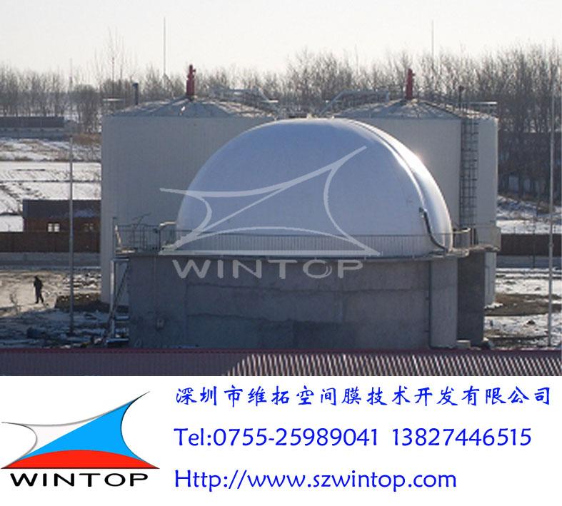 沼氣貯存柜(罐)的結構簡單無須過多維護,膜材均采用耐腐蝕的環保專用復合材料,主要由高強抗拉纖維、氣 密性防腐涂層、表面涂層(PVDF)組成,具有防腐、抗老化、抗微生物及紫外線等功能,并且防火級別達到歐洲標準。