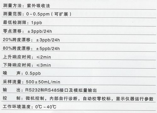 TH-2003型紫外吸收法臭氧分析儀為紫外吸收式單光路結構。254nm波長的紫外光線通過吸收池的光路末端測出池管內被O 3吸收后的光強和未被O 3吸收的光強1 0,將這兩個值代入朗伯一比耳定律,計算出相應的03濃度(單位ppm,亦可換算為mg/m 3)儀器帶有溫度、壓力補(bu)償(chang)。