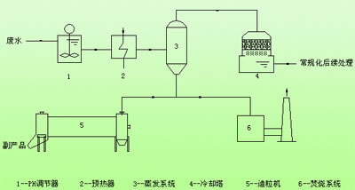 該技術通過蒸發濃縮最大限度地使水與有機物及鹽類分離,濃縮后的有機物或生產副產品或焚燒,蒸餾液由于污染物濃度較低,且BOD/COD顯著升高,可進行常規化處理。