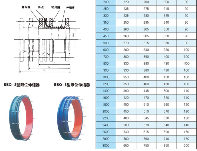 SSQ-1型限位套管伸縮器,SSQ-2型限位套管伸縮器,SSQ-3型限位套管伸縮器,SSQ型鑄鐵伸縮器,SF鋼制伸縮器,CS型熱力管道伸縮器,KRHD型鋼質柔性接頭,快速管道連接器,三盤連接器,單盤連接器,插口式伸縮器,承盤式伸縮器,兩端法蘭限位防拉脫壓盤式伸縮器,法蘭式伸縮器,兩端法蘭伸縮器,兩端法蘭壓盤式限位伸縮器,耐高壓灰管大位移伸縮器。