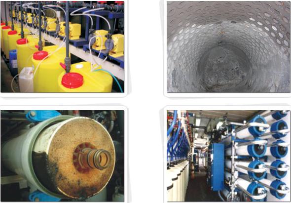 問鼎公司開發了具有自主知識產權的一系列膜處理清洗劑、膜阻垢劑與膜分散劑。用于控制膜分離系統中碳酸鈣、硫酸鹽、硅垢、氧化鐵沉淀及細菌粘泥所造成的結垢、堵塞等。被廣泛應用于不同類型的膜系統中,如超濾、納濾、反滲透甚至EDI系統中。
