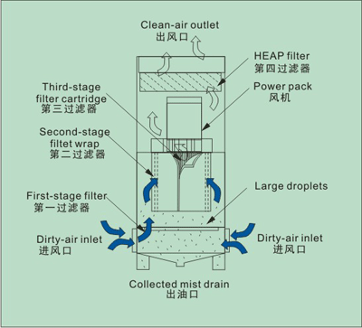 CDR-A系(xi)列油(you)霧過濾器(油(you)霧收集機),采用立體多層(ceng)設計結構