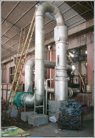b、采用懸浮式旋壓脫硫除塵,具有效率高,脫硫除塵同時進行的雙重功能,除塵效率>90--95%以上,脫硫效率>80%以上,并能有效地吸附煙氣中的微細粉塵。