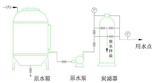 自來水公司供應的自來水通常含有余氯,在飲料及啤酒生產中,原水水質除了要符合我國《生活飲用水衛生標準》(GB5749-85)以外,對濁度、色度、游離氯、鐵含量等提出來更高的要求。所以通常還需要在自來水后增加炭濾等。