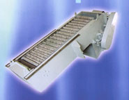 為全不銹鋼結構,裝設在明渠中,格(ge)柵(zha)底部(bu)(bu)被(bei)污水淹沒。由固定(ding)格(ge)柵(zha)架、柵(zha)條、鏈條、回轉(zhuan)運(yun)行的耙齒(chi)、橡膠密封帶及電動減(jian)速機組成,污水流過(guo)格(ge)柵(zha)時(shi),污水中的較大(da)懸浮物及漂浮物被(bei)截留在格(ge)柵(zha)下部(bu)(bu)。雜物通過(guo)回轉(zhuan)運(yun)行的耙齒(chi)沿柵(zha)條上升,翻越格(ge)柵(zha)頂部(bu)(bu),落到格(ge)柵(zha)后(hou)側的不銹鋼渣斗(dou)內。