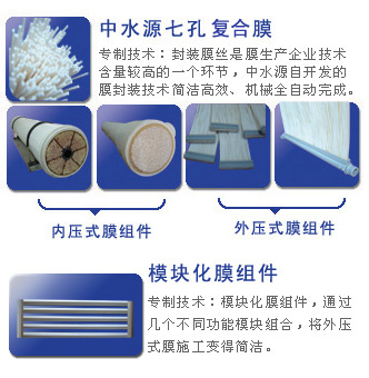 中水源七孔膜是國內第一支復合多孔膜,本公司PVC 材質多孔膜目前未見國外生產。本公司生產、銷售不同截留分子量、不同材質(聚乙烯、PVDF等)、不同封裝殼體、不同應用領域的膜組件。且在實際應用上積累了很多經驗, 膜生物反應器成套設備采用不銹鋼方鋼自制UPVC插槽制作, 耐腐蝕、安裝方便, 便于組合使用。并提供家庭用純水機。本公司提供膜生物反應器:專用簾式膜,管式模組件,家用純水機具有以下產品特點: