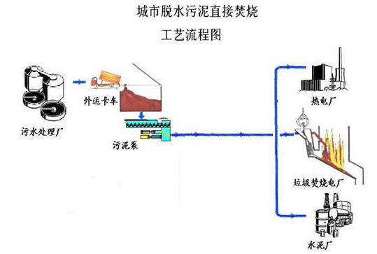 采用北京中礦環保科技股份有限公司專利技術“粘稠物料管道輸送系統”的相關裝備將脫水污泥全封閉的輸送至城市現有設施處置終端(如:水泥廠水泥回轉窯、熱電廠循環流化床鍋爐或煤粉爐球磨機前、垃圾電廠垃圾焚燒爐等)