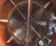 雙筒渦輪增加除塵脫硫塔是通過改變煙氣流道的大小和方向,在塔體內對煙氣矢量加速,建立了動態平衡湍流場,形成一定高度的乳化層,并利用水或者水和堿性溶質的混合物作為分離劑,把燃煤鍋爐或者工業爐窯排放的尾氣煙塵、SO2和其他廢氣徹底凈化吸收的一種濕式高效除塵脫硫一體化裝置,除塵效率可達99.97%,脫硫效率可達99.9%。其特征在于提出一種雙筒渦輪增壓技術,在套筒內建立渦流擴散場,使氣液的比表面積膨脹到最大,直接捕集和強化促進捕集煙塵微粒和二氧化硫。特征在于采取內外雙筒結構,內筒完全占據因氣流造成的中心負壓區,有效消除中心負壓區存在的黏性耗散、湍流脈動和短路現象,從而提高除塵脫硫效率、降低壓阻,達到系統穩定運行的目的。
