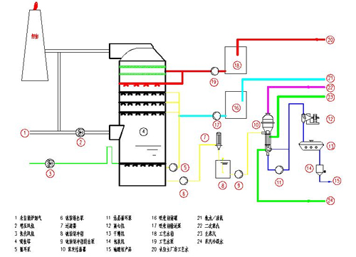 1、煙氣中的SO2與吸收塔循環漿液接觸。