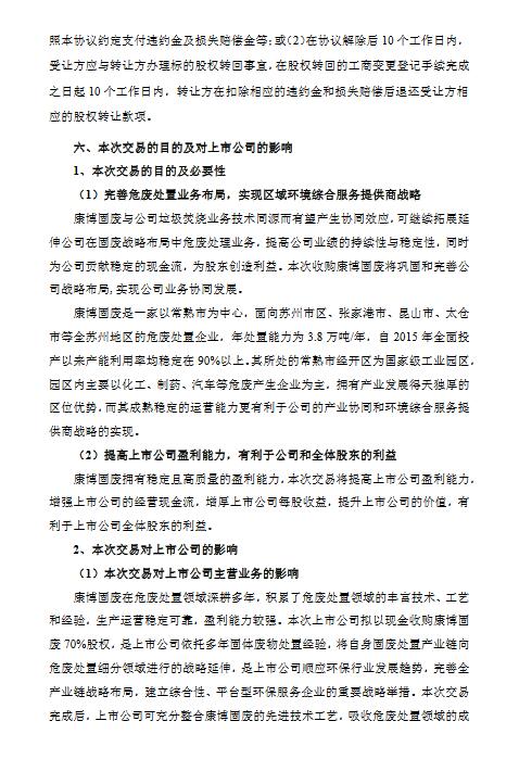4月13日晚間,永清環保公告稱:公司與杭湘鴻鵠(杭州)股權投資合伙企業(有限合伙)簽署《股權轉讓協議》,擬以現金59,500萬元收購江蘇康博工業固體廢棄物處置有限公司(以下簡稱“康博固廢”)70%股權。本次交易完成后,永清環保將持有康博固廢70%股權,康博固廢將成為永清環保控股子公司。本次交易將提高永清環保盈利能力,增強經營現金流,增厚每股收益,提升上市公司整體利潤水平和公司價值,符合公司戰略發展需要及長遠利益,保障上市公司全體股東的利益。
