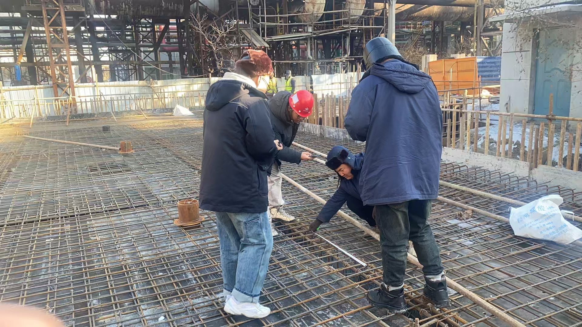 地處東北的鞍山地區,冬季施工時,低溫給工程質量帶來嚴峻挑戰。“我們首次在鞍鋼廠區內搭設暖棚,為混凝土施工創造適宜的溫度環境。同時,在混凝土中添加早強劑和防凍劑,確保基礎強度能夠滿足設計要求,有效抵御了低溫對工程質量的影響。”劉占博介紹道。