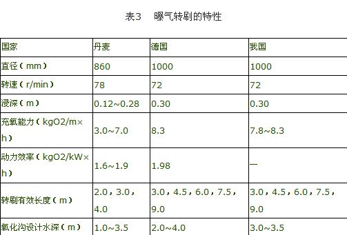 表3中是摘錄文獻的部分曝氣轉刷的特性。