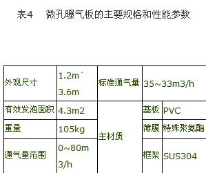 表4 中列出了微孔曝氣板的主要規格和性能參數。