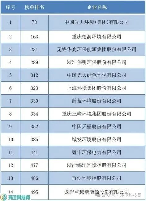 光大環境、三峰環境等14家環境、固廢企業上榜“全球500強”