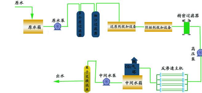 注:提供以上所介紹的工藝設計,僅作為參考。一個具體的系統設計與原水水質、產品水的水質要求、所執行的標準,設備的運行可靠性、經濟投資等諸多因素密切相關。