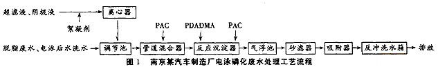南京某汽車制造廠電泳磷化廢水采用物化法處理,工藝流程見圖: