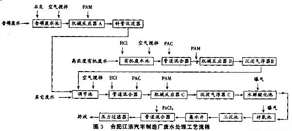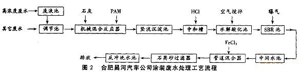 合肥昌河汽車公司涂裝廢水處理工藝見圖2。