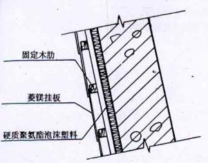 池外壁保溫層構造如圖2-1所示,其中的硬質聚氨酯泡沫塑料保溫層采用現場直接噴涂發泡成型施工工藝。施工方便,無接縫,與基層接合緊密,保溫性能好。