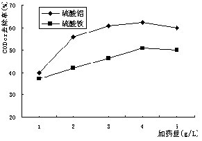 圖5 脫色污水中混凝劑加藥量與CODcr去除率的關系