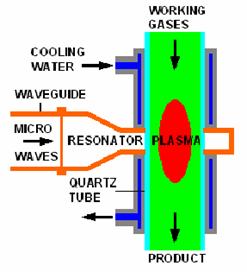 熱等離子體的產生方法,它包括大氣壓下電極間的交流(AC)與直流(DC)放電、常壓電感耦合等離子體、常壓微波放電等。下面介紹微波等離子體炬(microwave plasma torch):